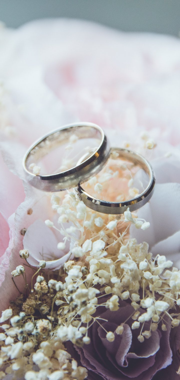 Wallpaper: wedding rings, wedding, flower arrangement - 720x1520