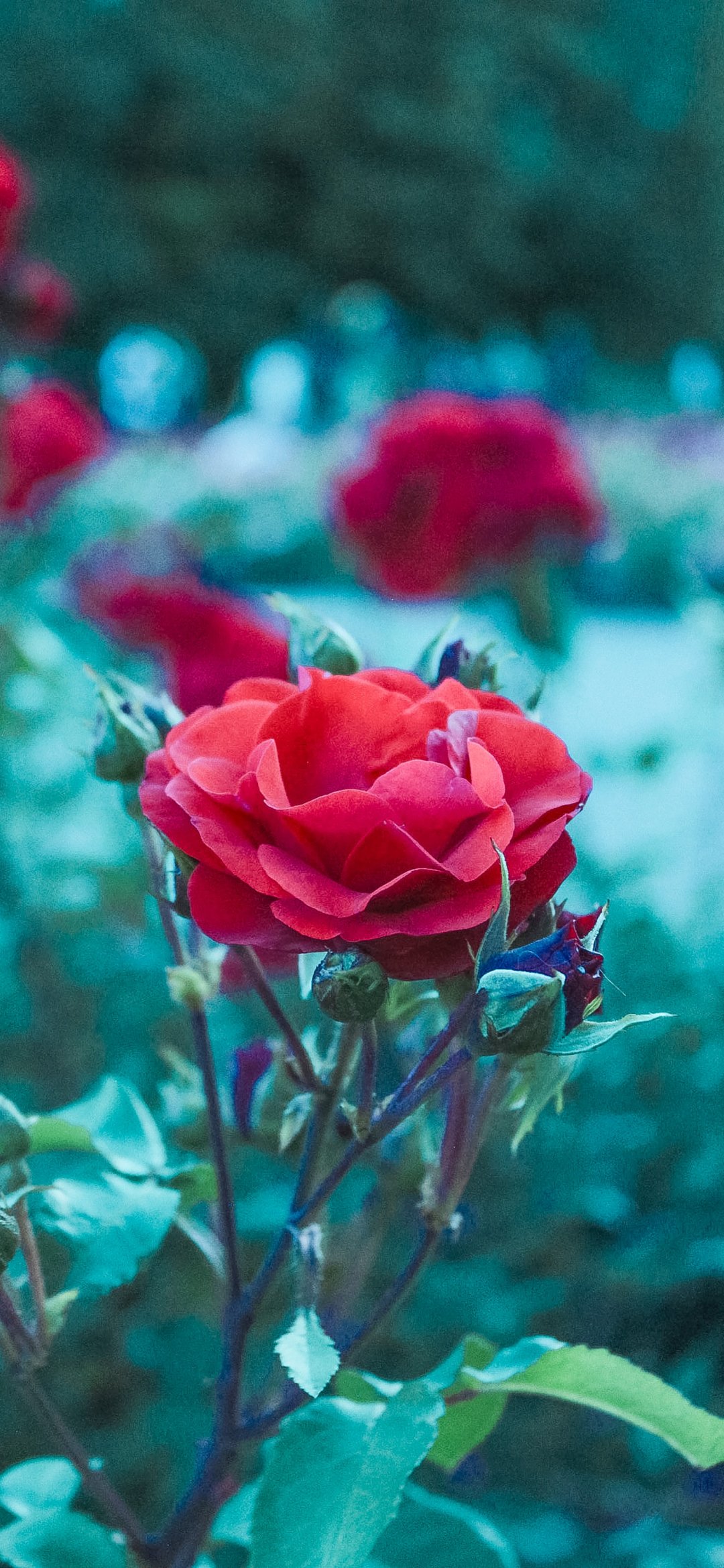Wallpaper: red geranium, green - 1080x2340