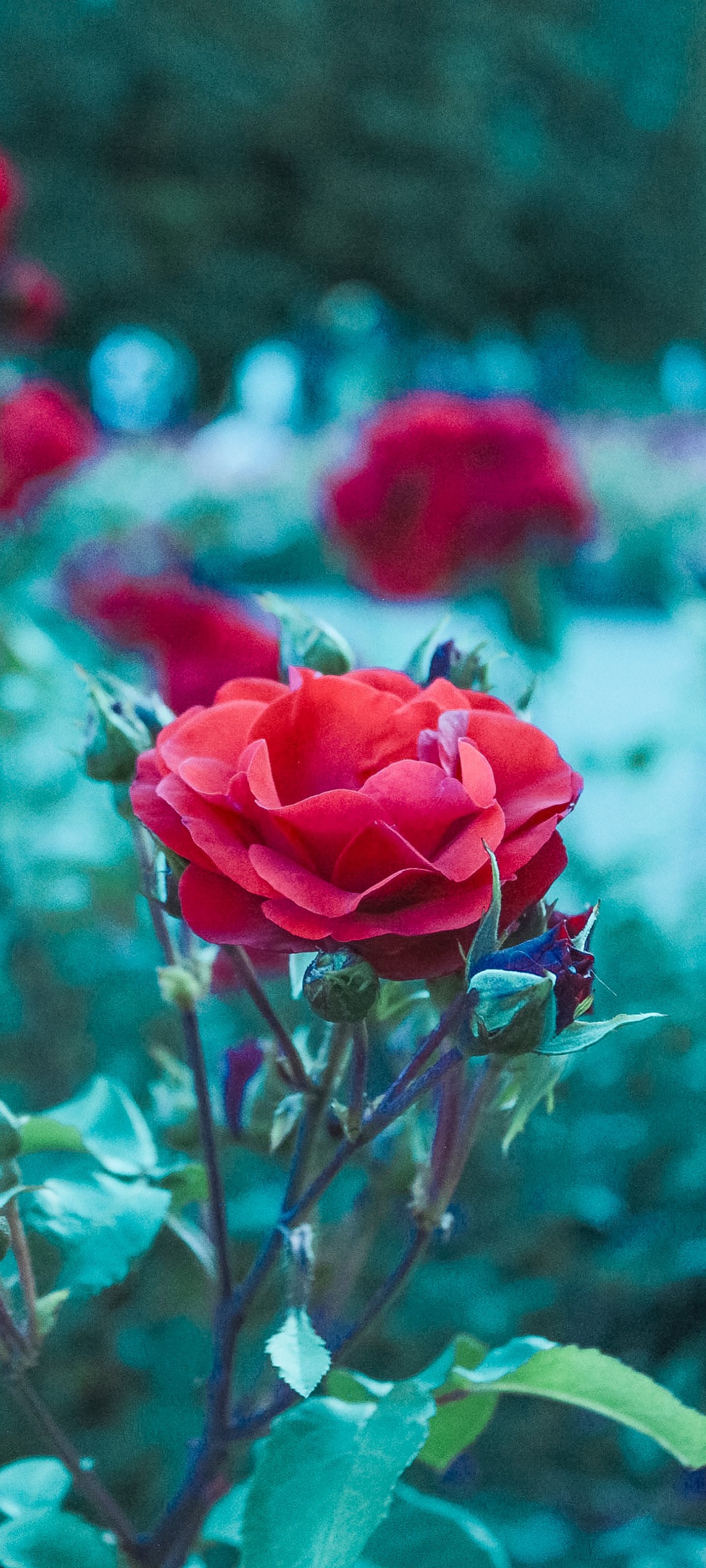 Wallpaper: red geranium, green - 1440x3200
