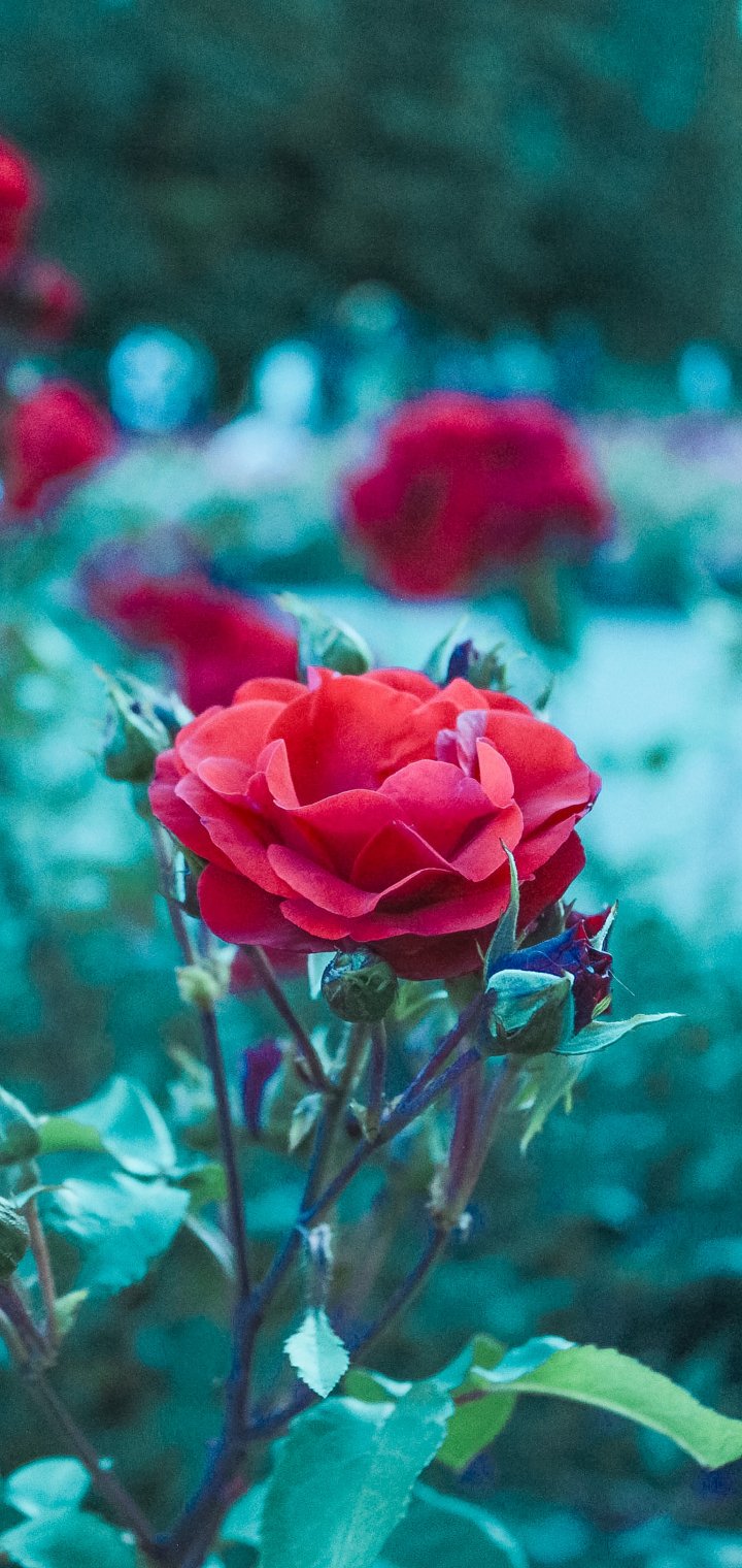 Wallpaper: red geranium, green - 720x1520