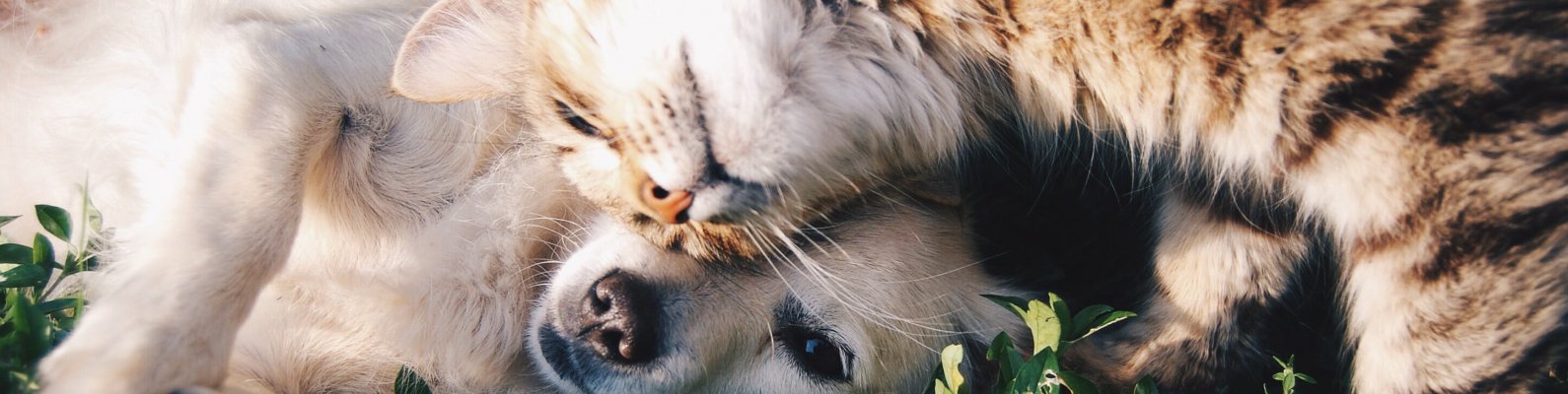 Wallpaper: cat and dog, friends, cute - 1590x400