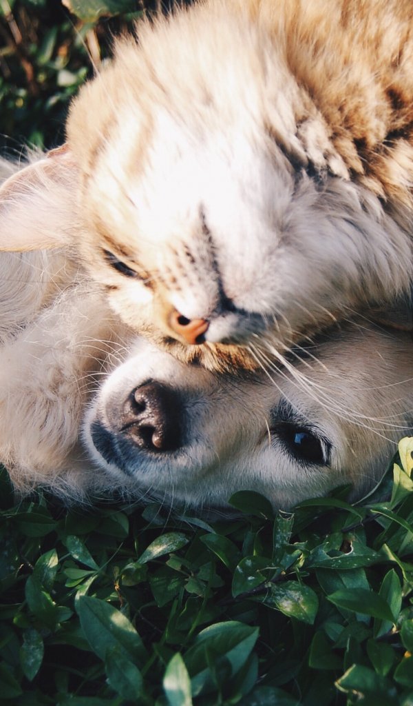 Wallpaper: cat and dog, friends, cute - 600x1024