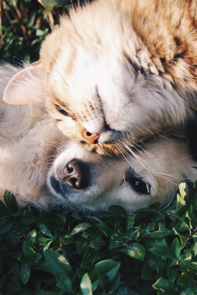 Wallpaper: cat and dog, friends, cute - 640x960