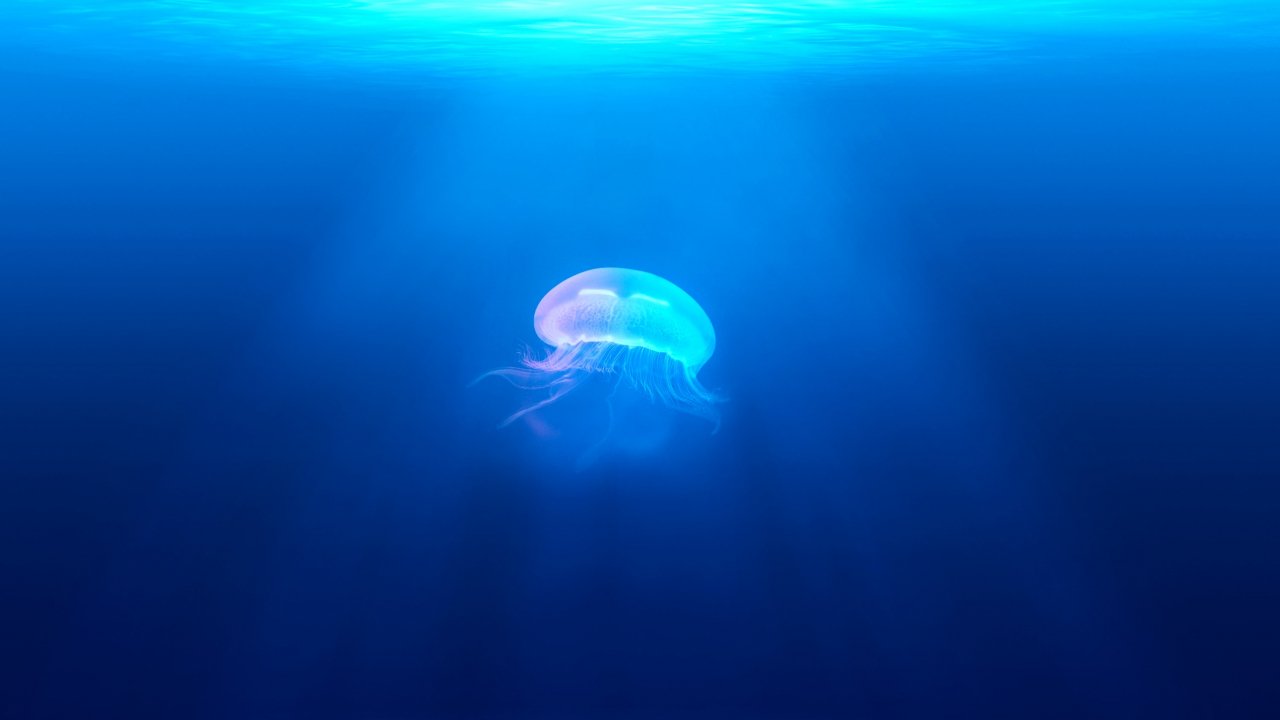 Wallpaper: jellyfish, underwater world, blue - 1280x720