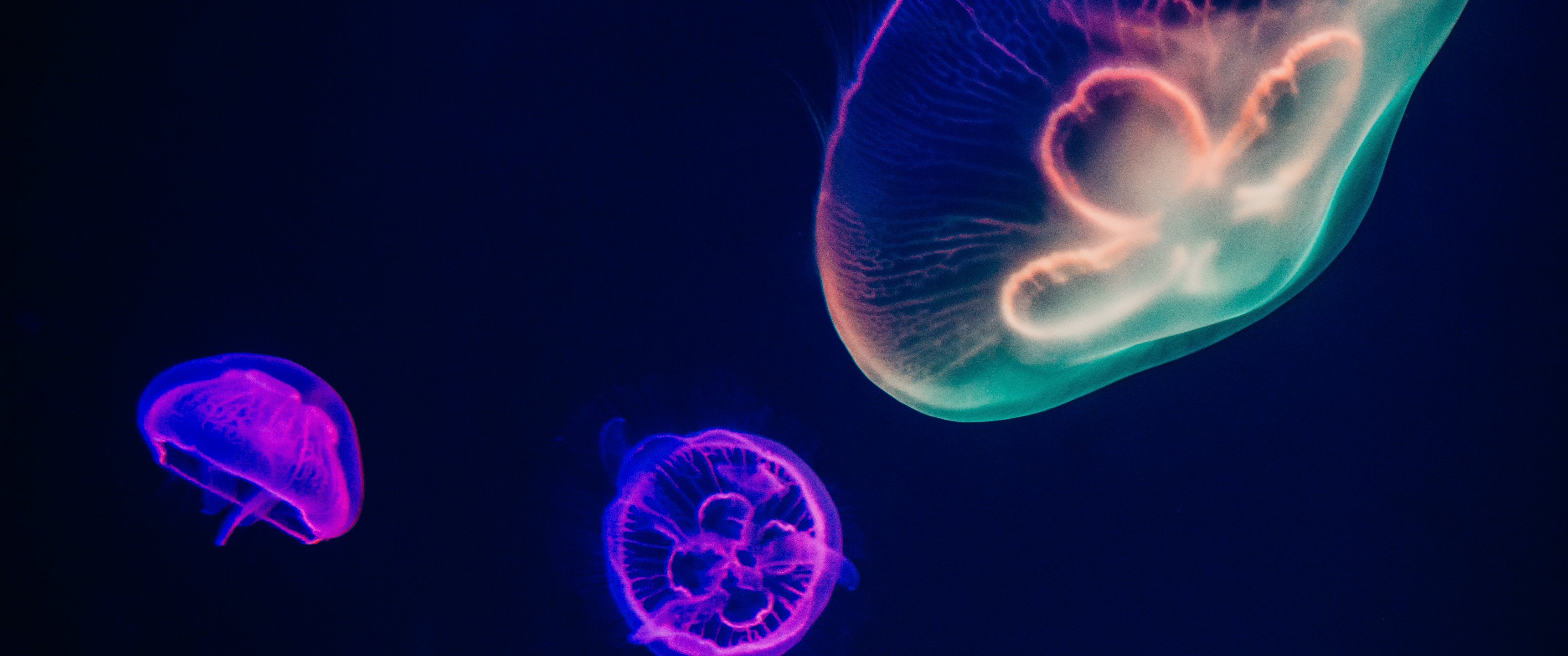 Wallpaper: underwater world, jellyfish, dark - 3440x1440