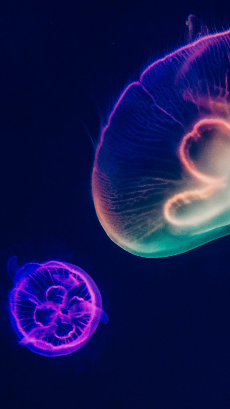 Wallpaper: underwater world, jellyfish, dark - 750x1334
