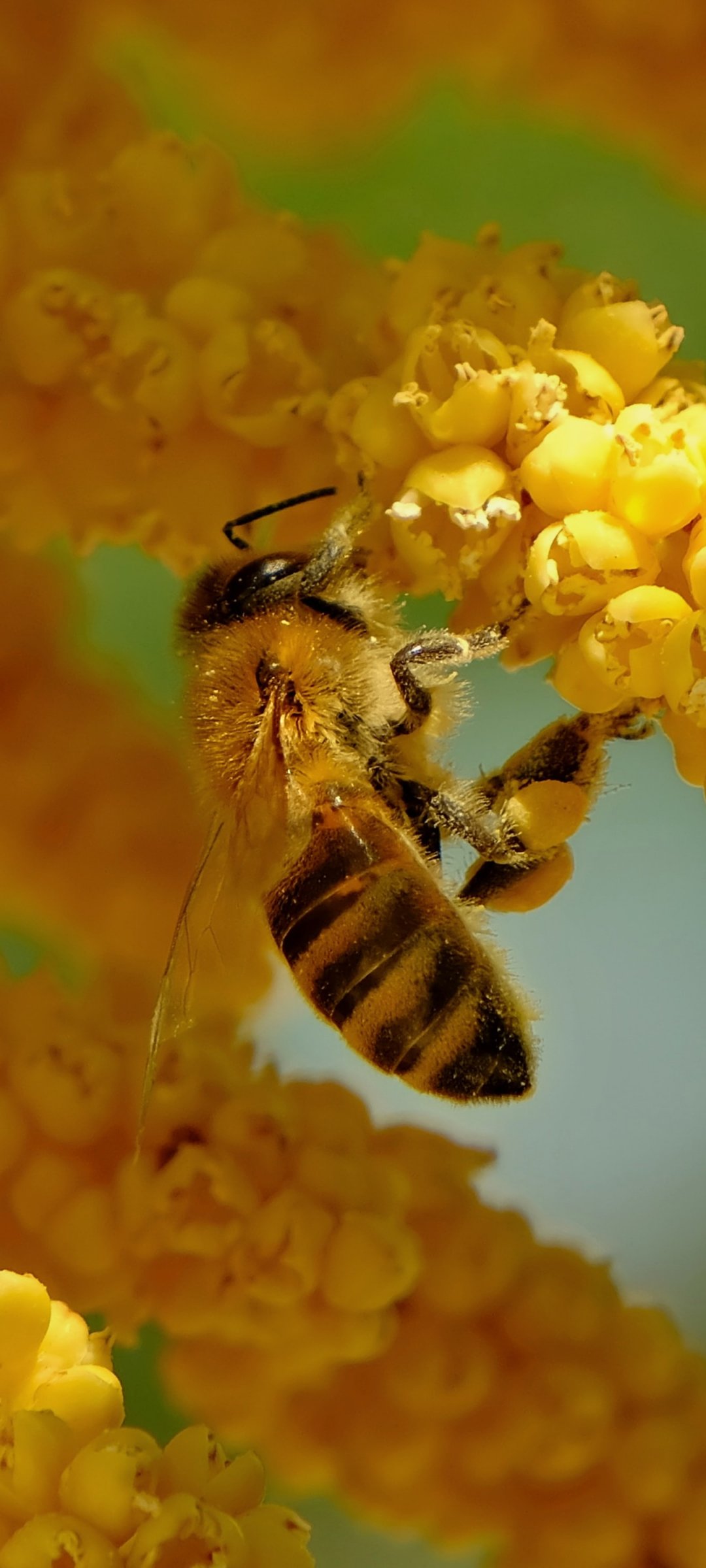 Wallpaper: bee, insect, flowers - 1080x2400