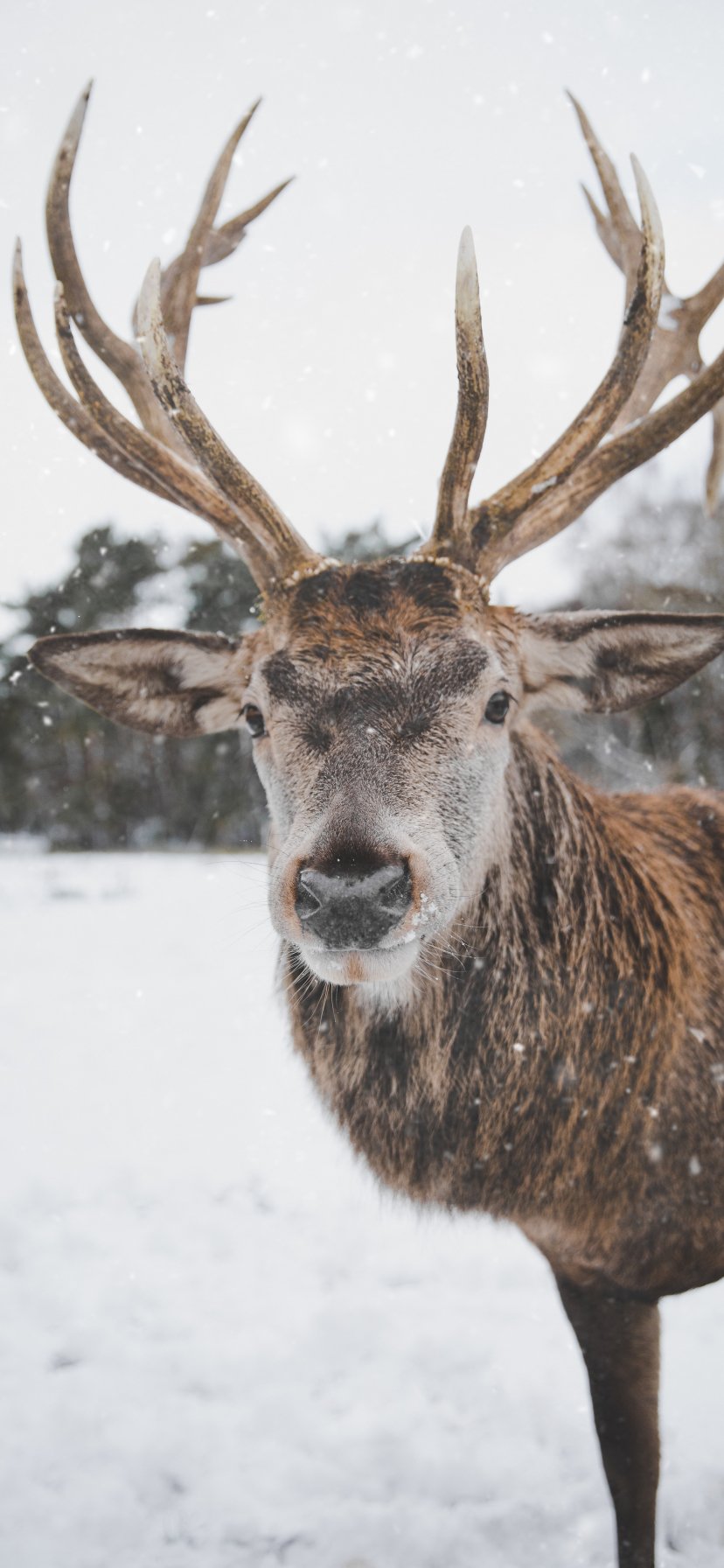 Wallpaper: deer, winter, snow - 828x1792