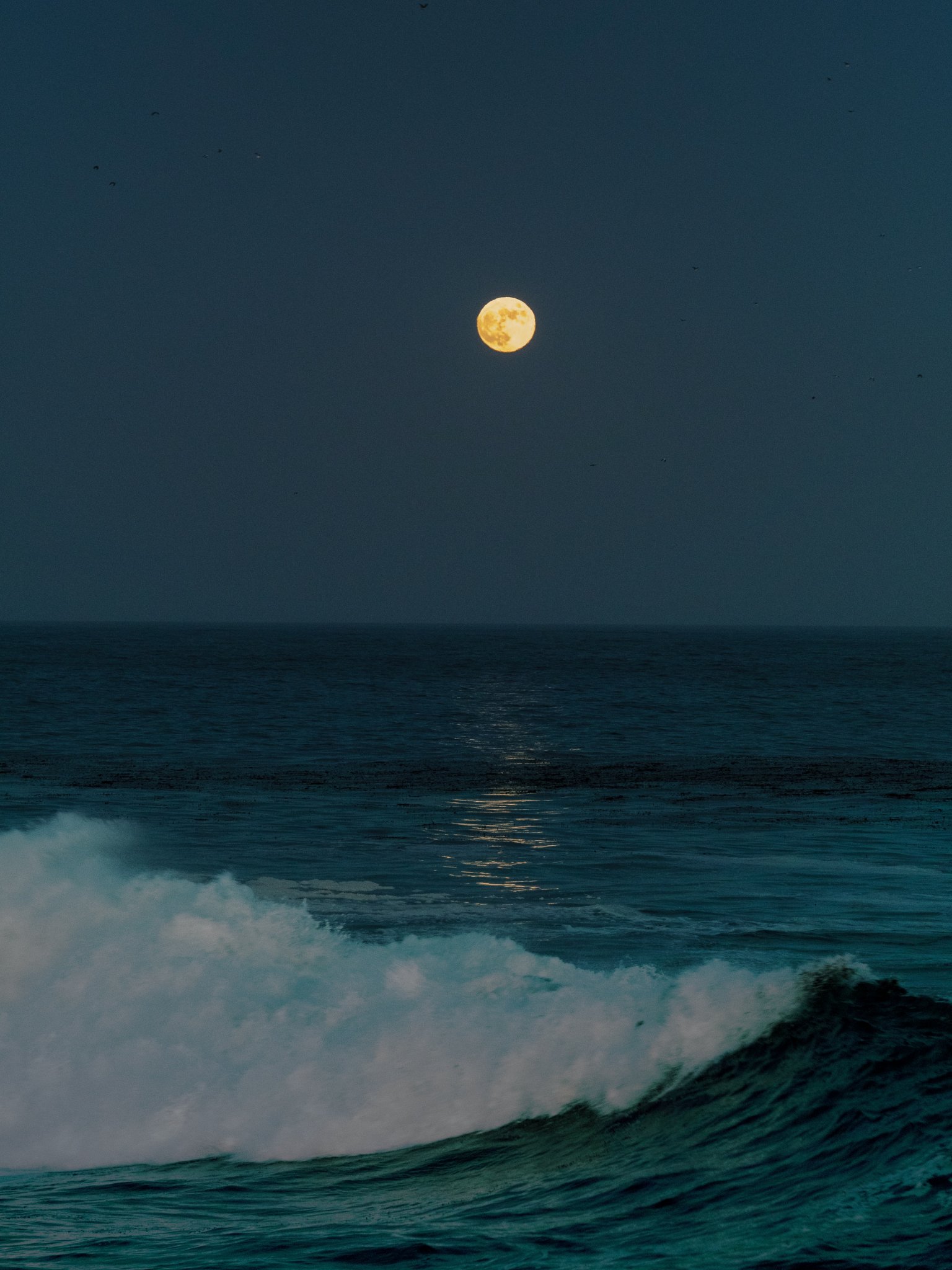 Wallpaper: full moon, sea waves - 1536x2048