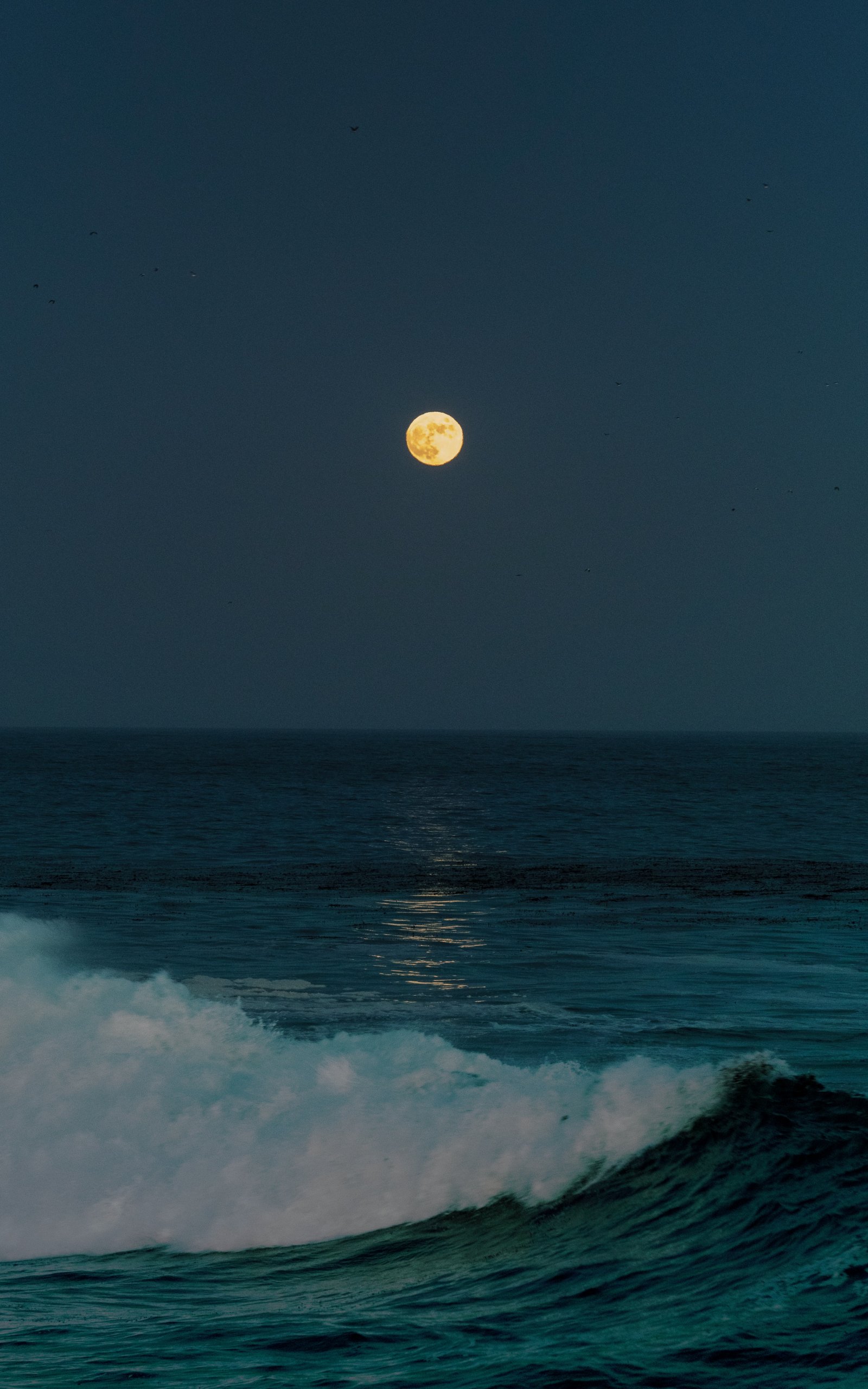 Wallpaper: full moon, sea waves - 1600x2560