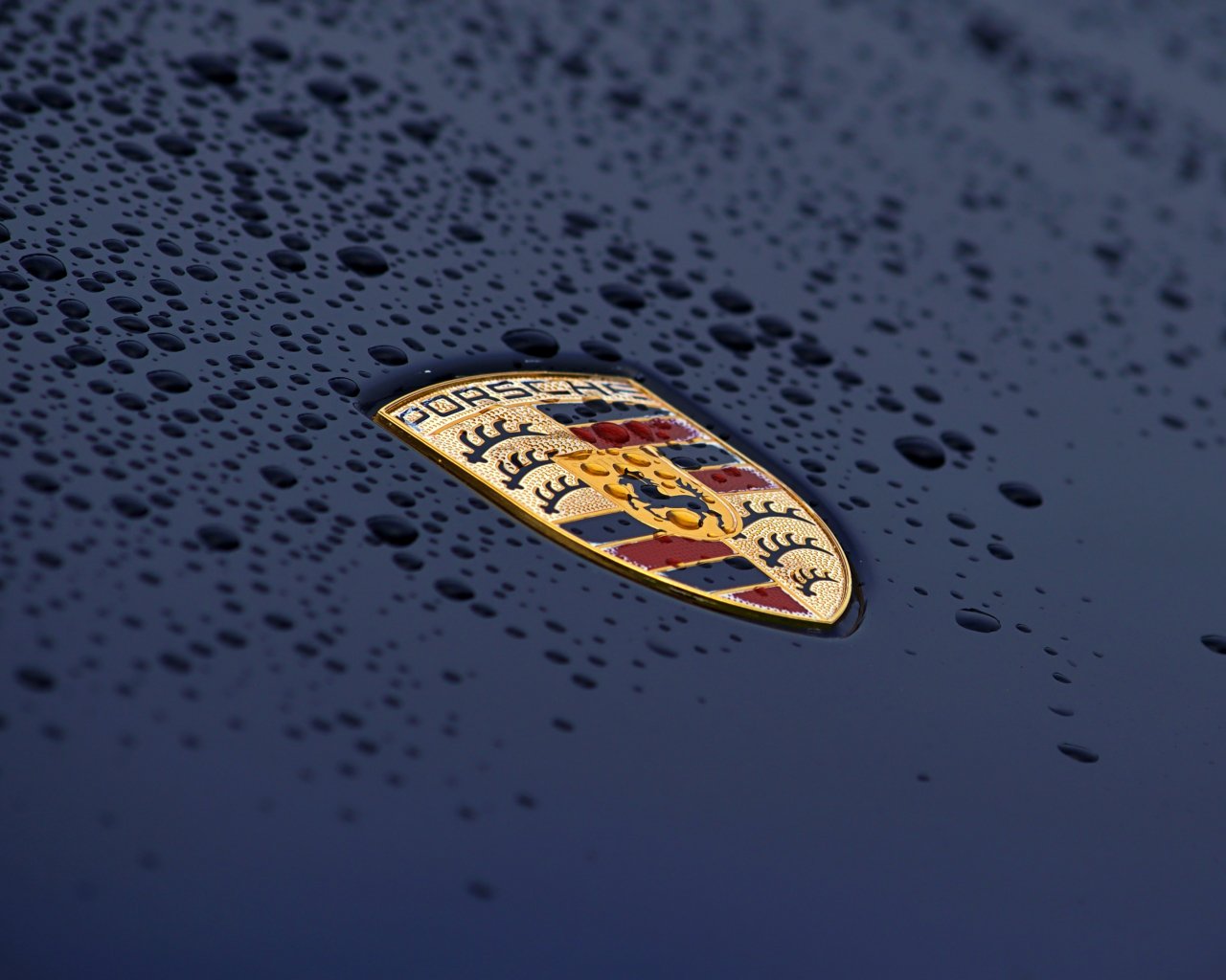 Wallpaper: Porsche logo, drops, hood - 1280x1024