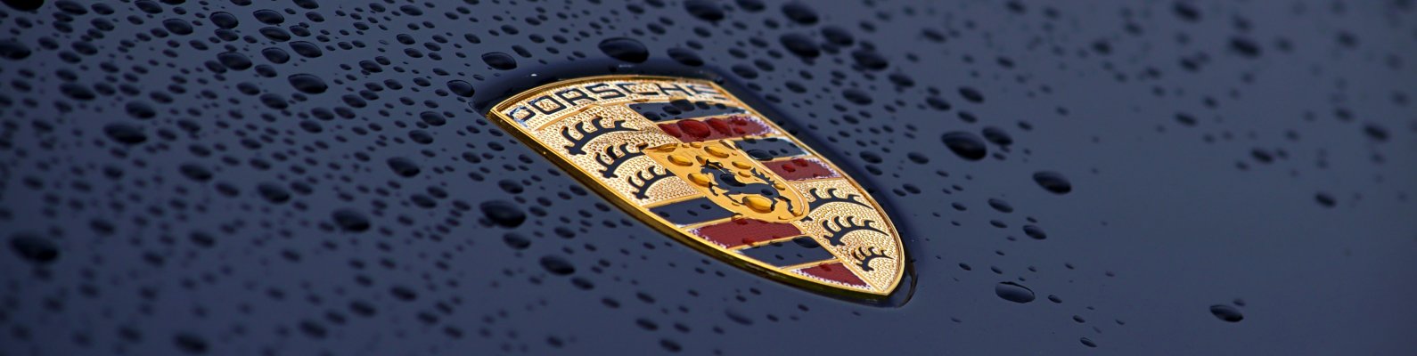 Wallpaper: Porsche logo, drops, hood - 1590x400