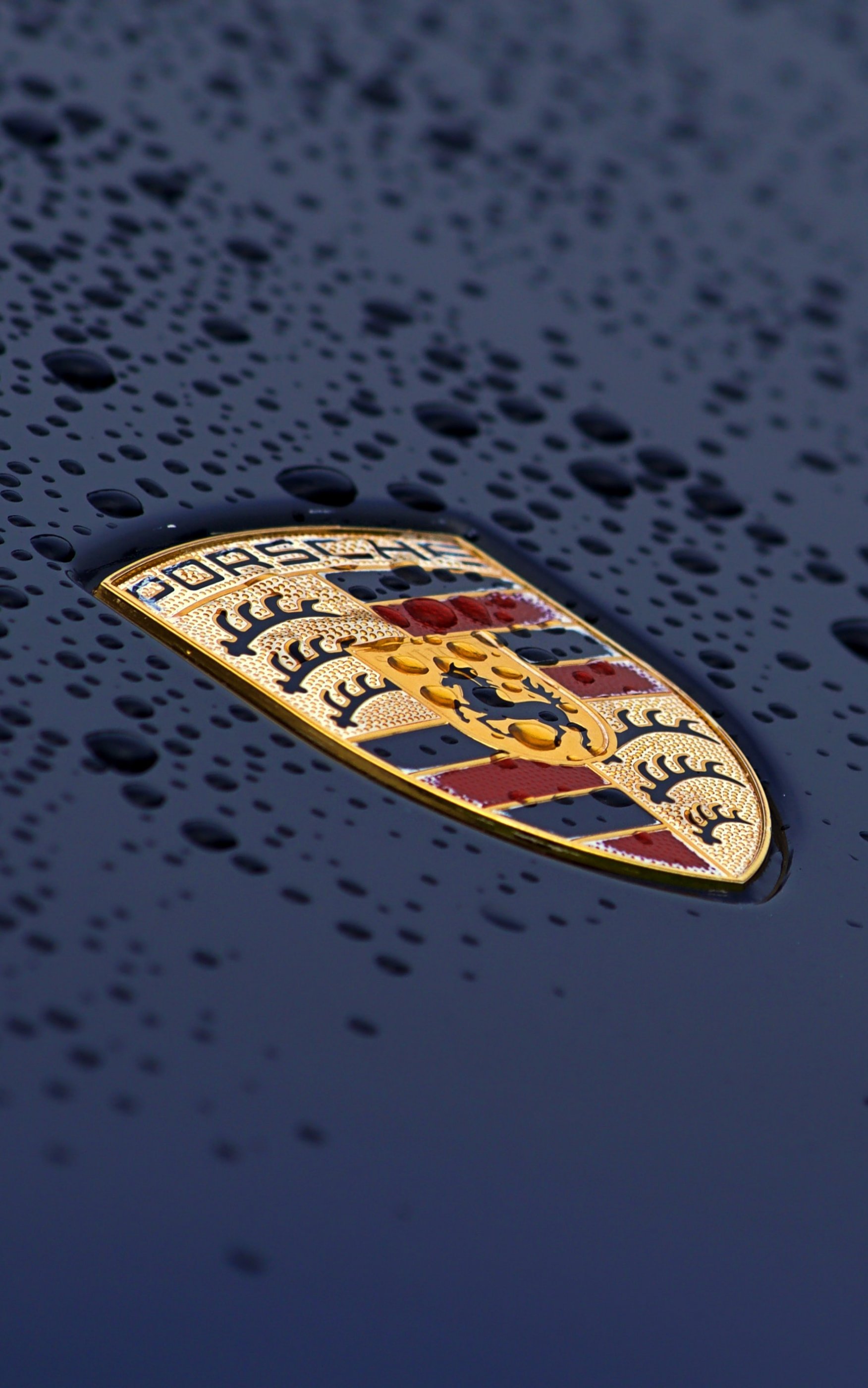 Wallpaper: Porsche logo, drops, hood - 1752x2800