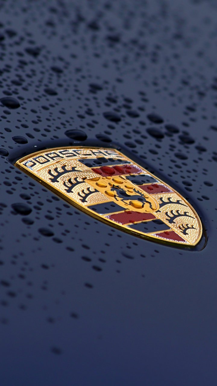 Wallpaper: Porsche logo, drops, hood - 720x1280