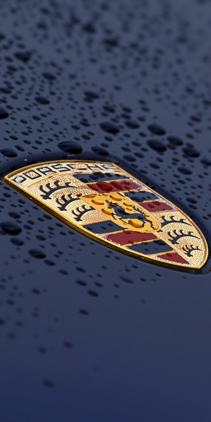 Wallpaper: Porsche logo, drops, hood - 720x1440