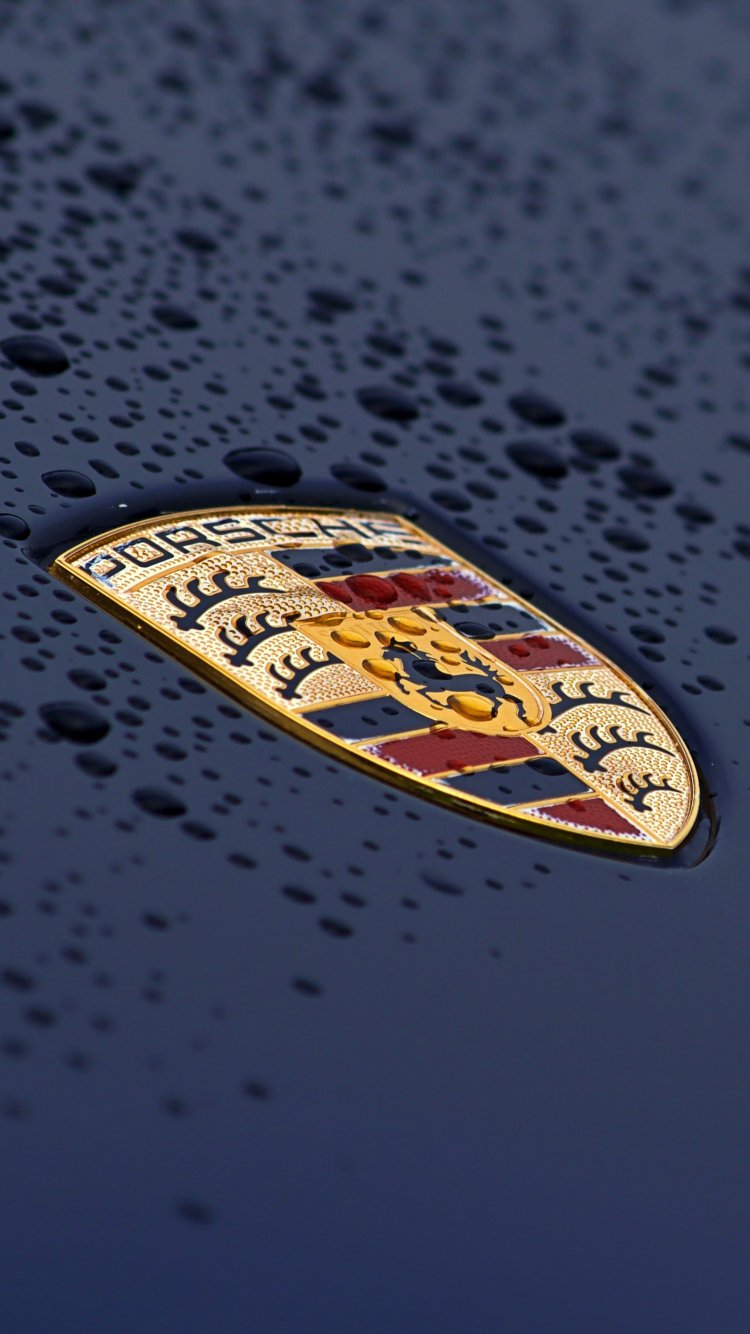Wallpaper: Porsche logo, drops, hood - 750x1334