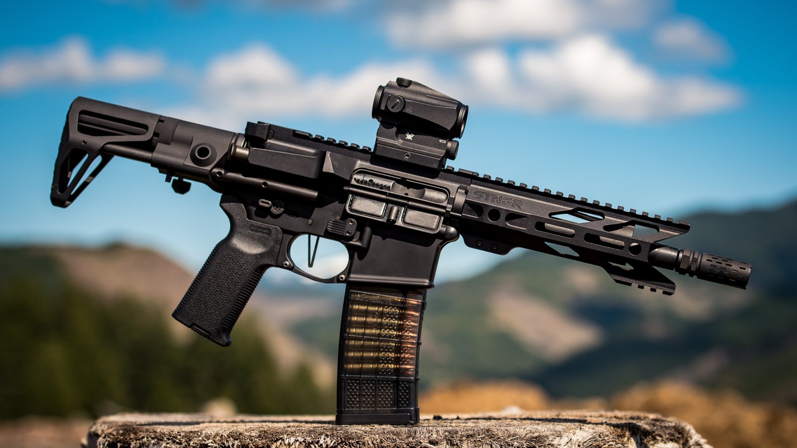 Wallpaper: AR-15 STNGR, machine, weapon - 1600x900