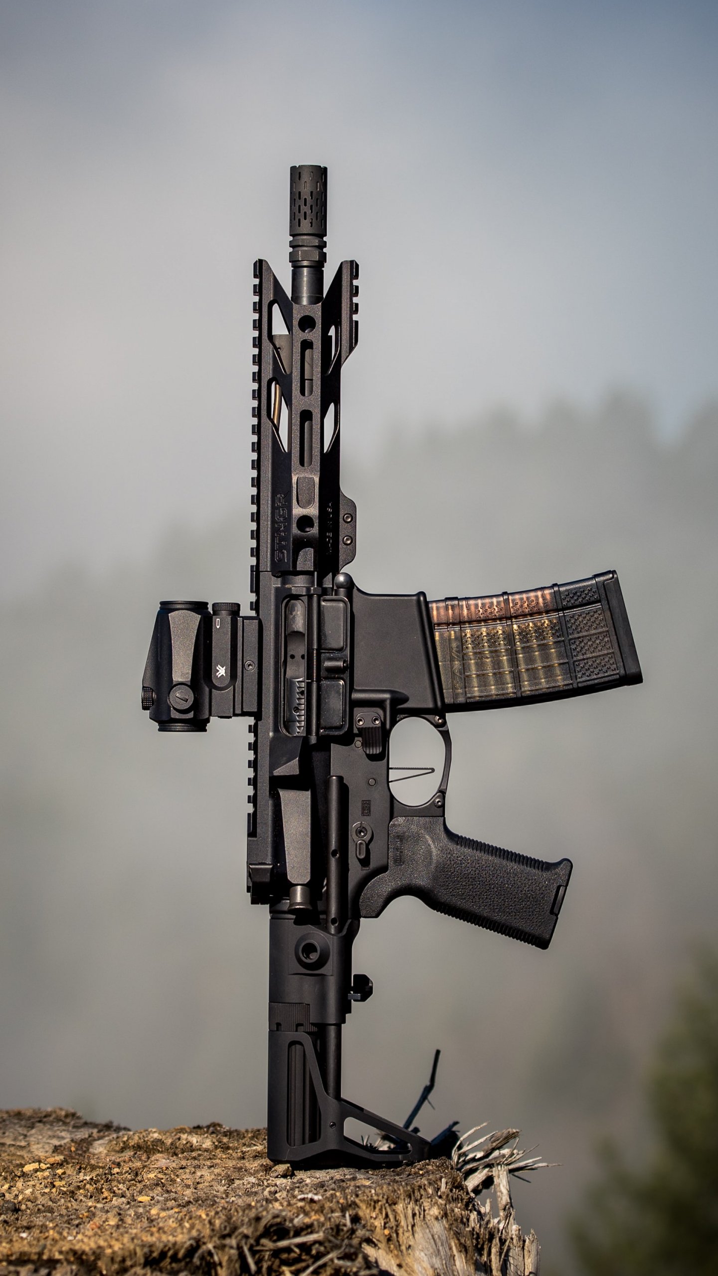 Wallpaper: AR-15 STNGR, weapon, machine - 1440x2560