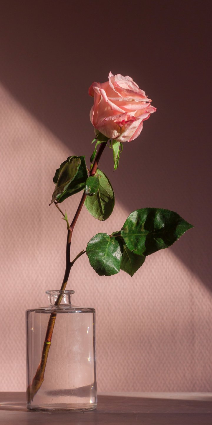 Wallpaper: rose in a glass, pink - 720x1440