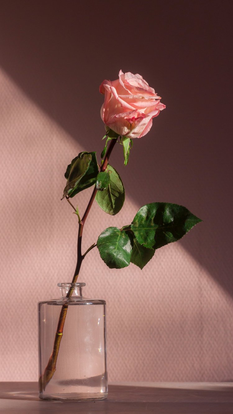 Wallpaper: rose in a glass, pink - 750x1334