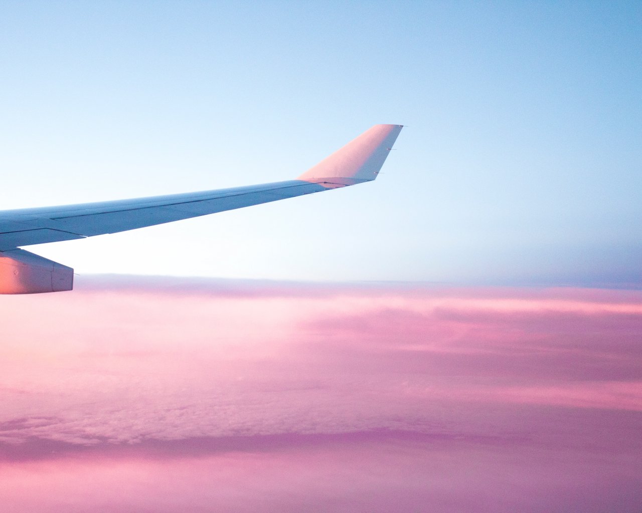 Wallpaper: airplane wing, pink sky, flight - 1280x1024