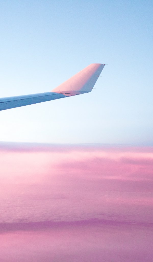 Wallpaper: airplane wing, pink sky, flight - 600x1024