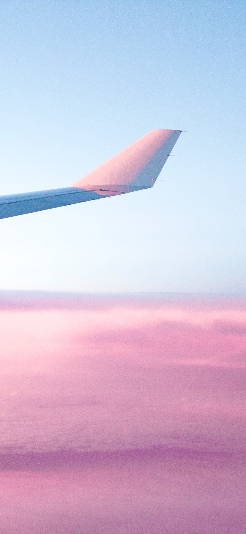 Wallpaper: airplane wing, pink sky, flight - 828x1792