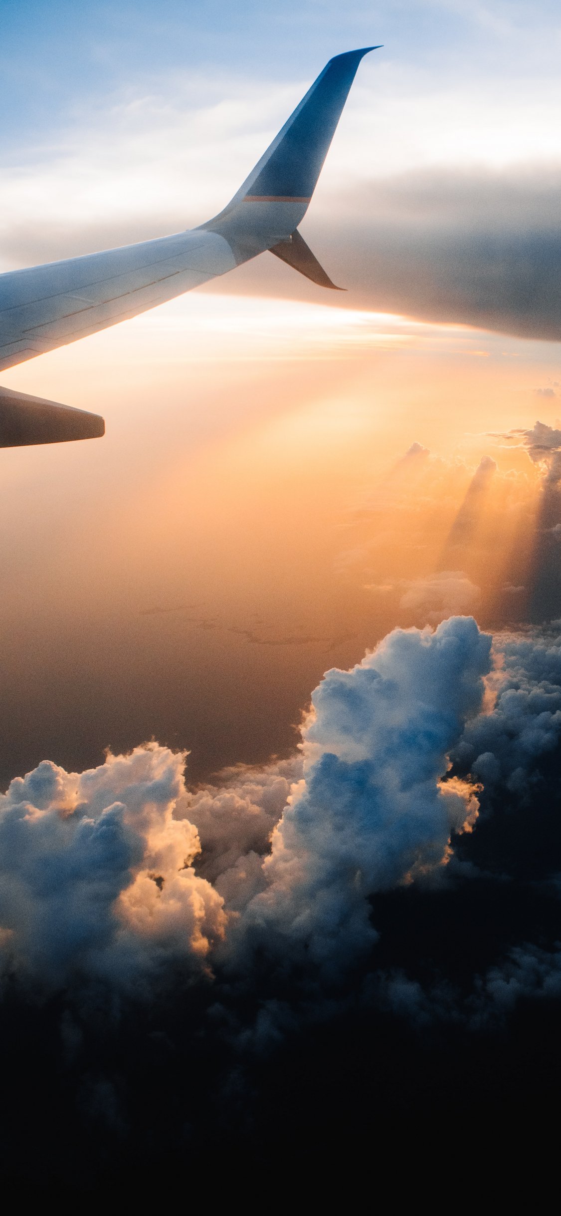 Wallpaper: airplane wing, sunlight, flight - 1125x2436