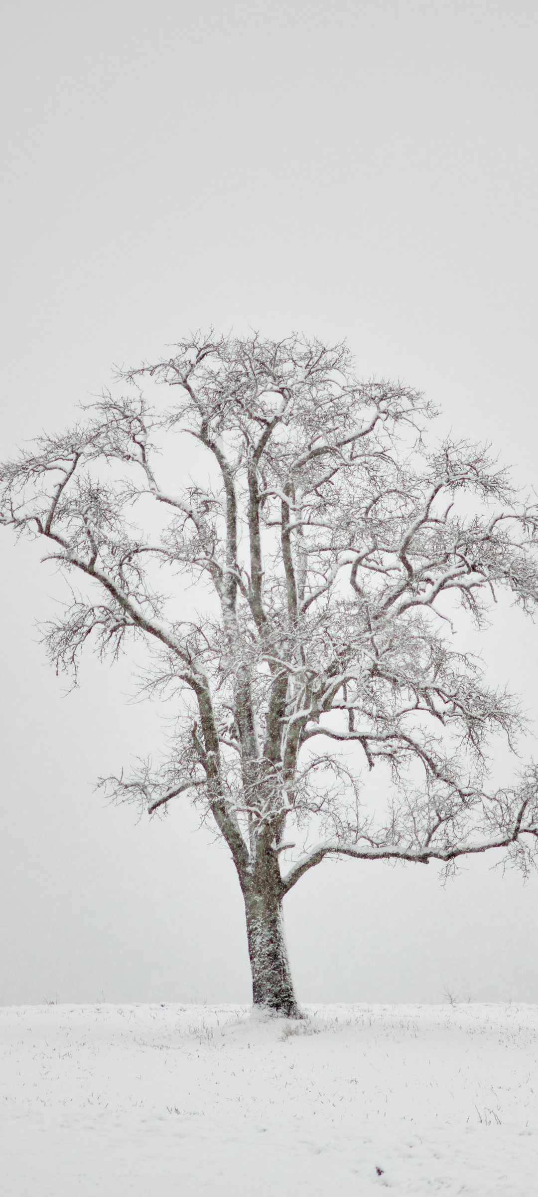 Wallpaper: lonely tree, winter, white - 1080x2400