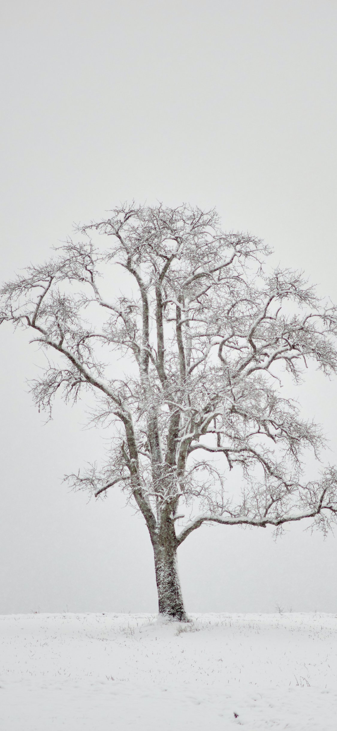 Wallpaper: lonely tree, winter, white - 1125x2436