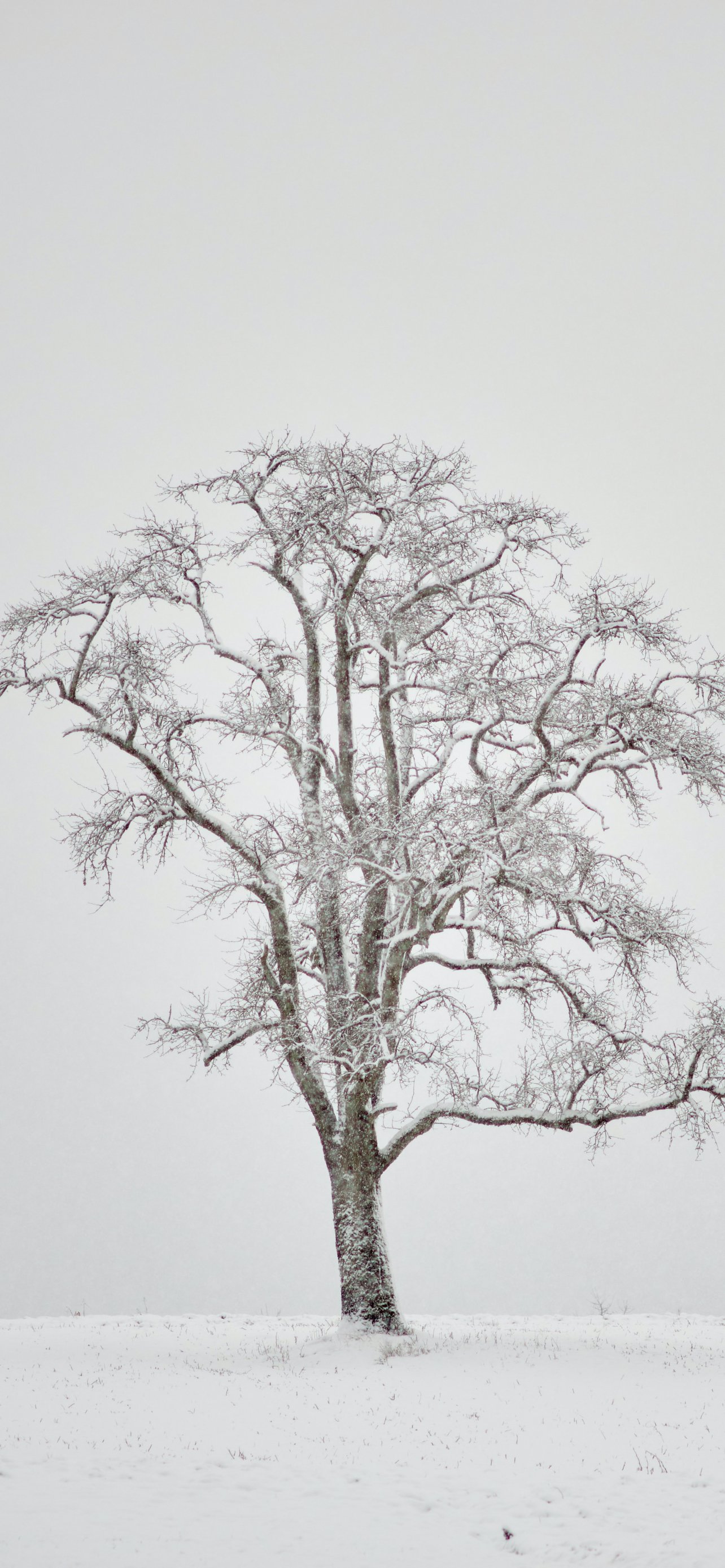 Wallpaper: lonely tree, winter, white - 1284x2778