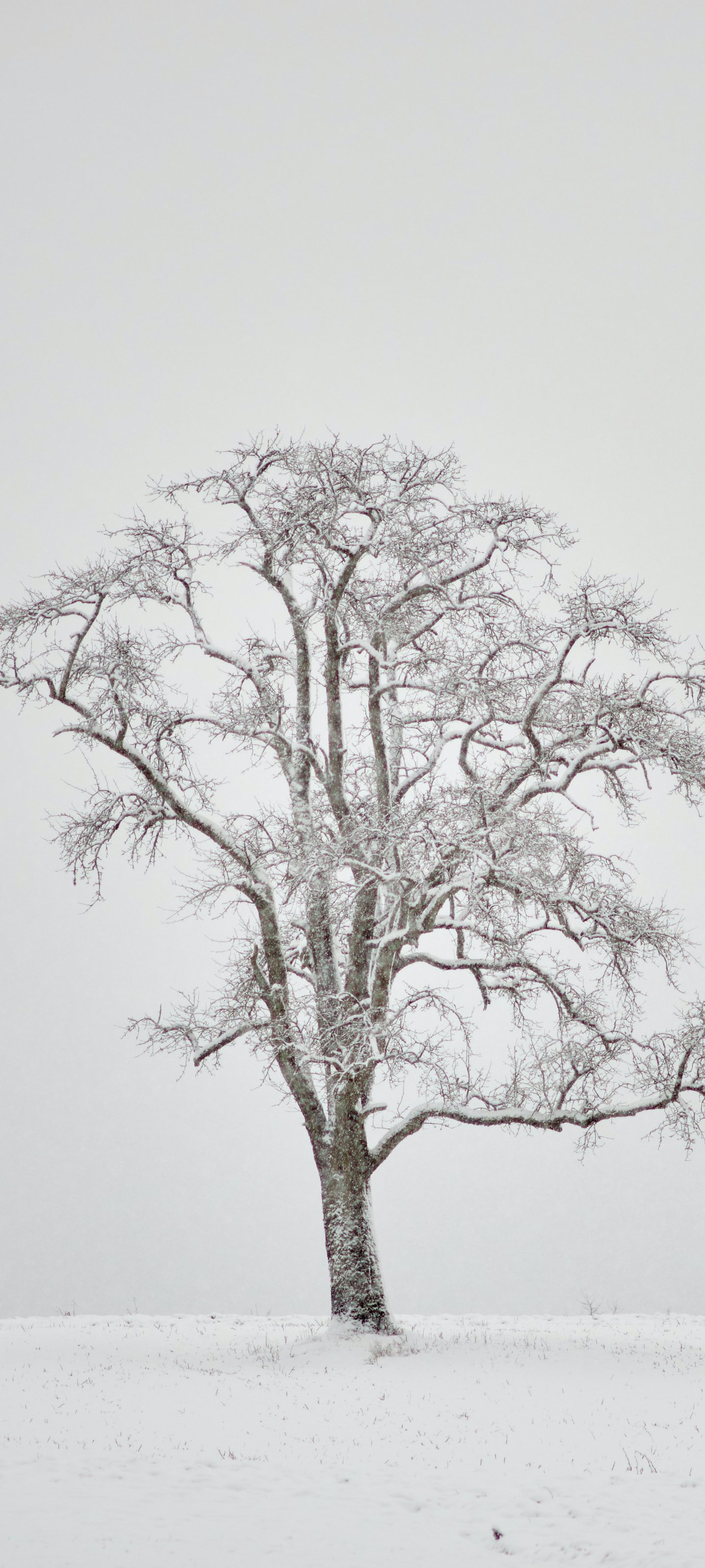 Wallpaper: lonely tree, winter, white - 1440x3200
