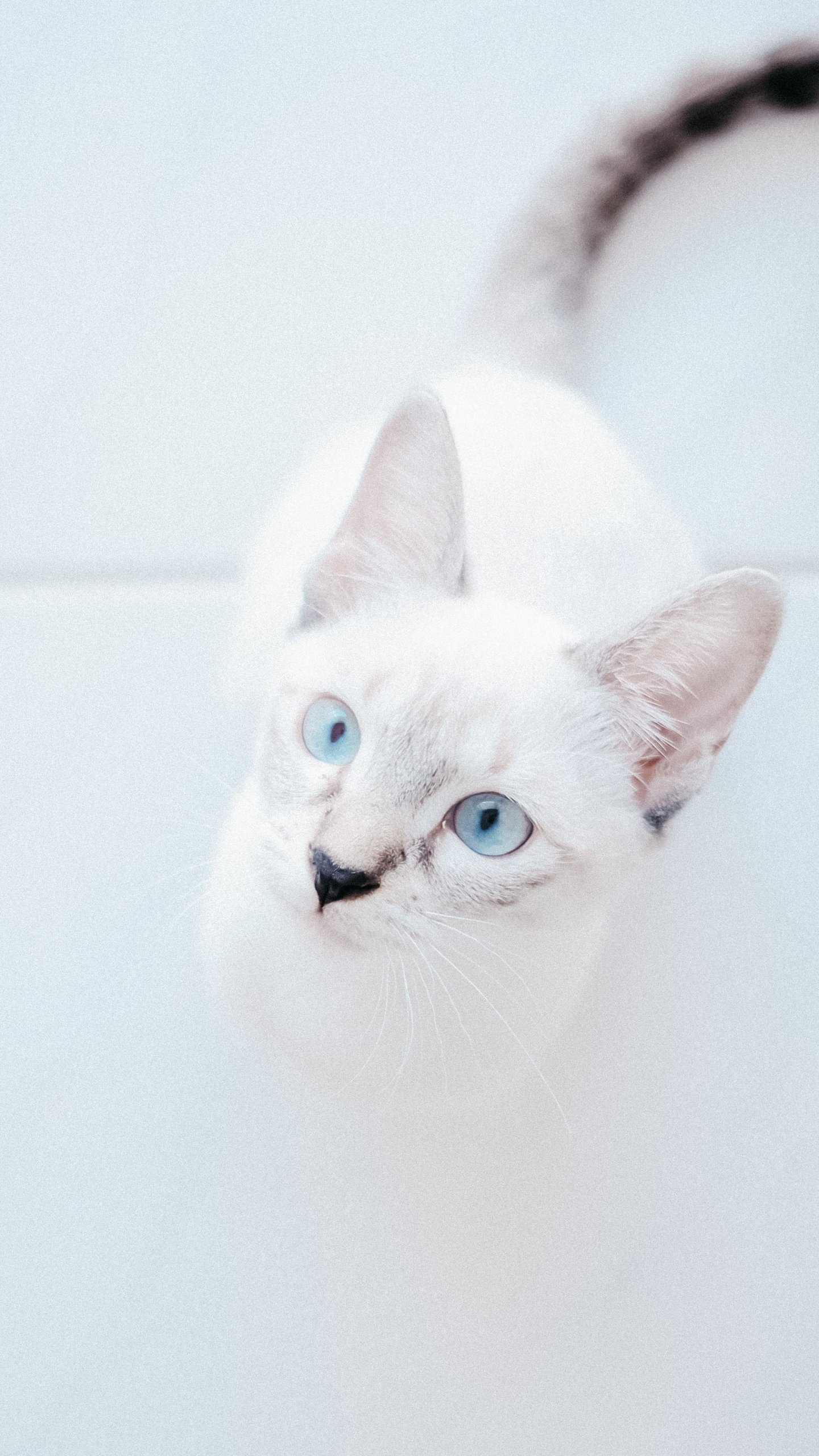 Wallpaper: white cat, blue eyes, look - 1440x2560