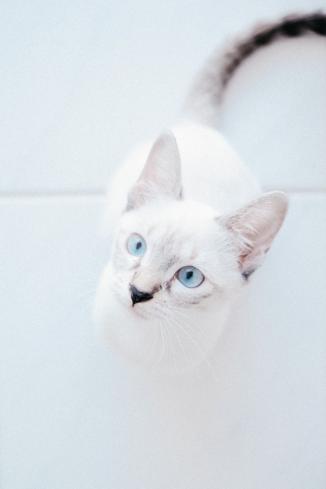 Wallpaper: white cat, blue eyes, look - 640x960