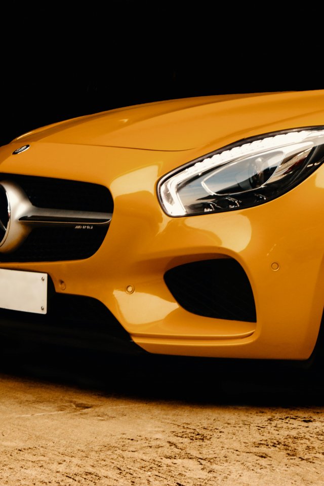 Wallpaper: yellow mercedes, sports car - 640x960