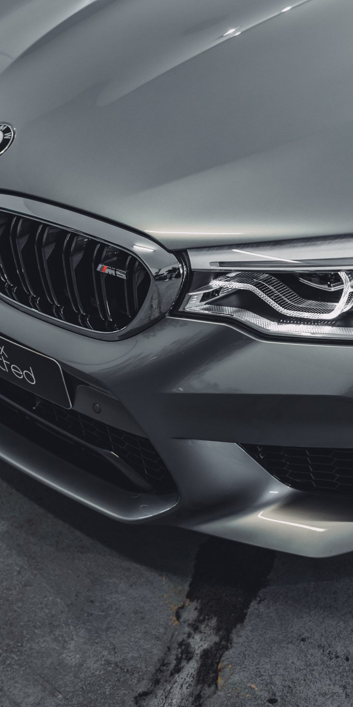 Wallpaper: gray BMW M5, sports car, gray - 720x1440