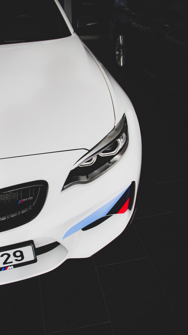 Wallpaper: white BMW M2, sports car, black and white - 640x1136