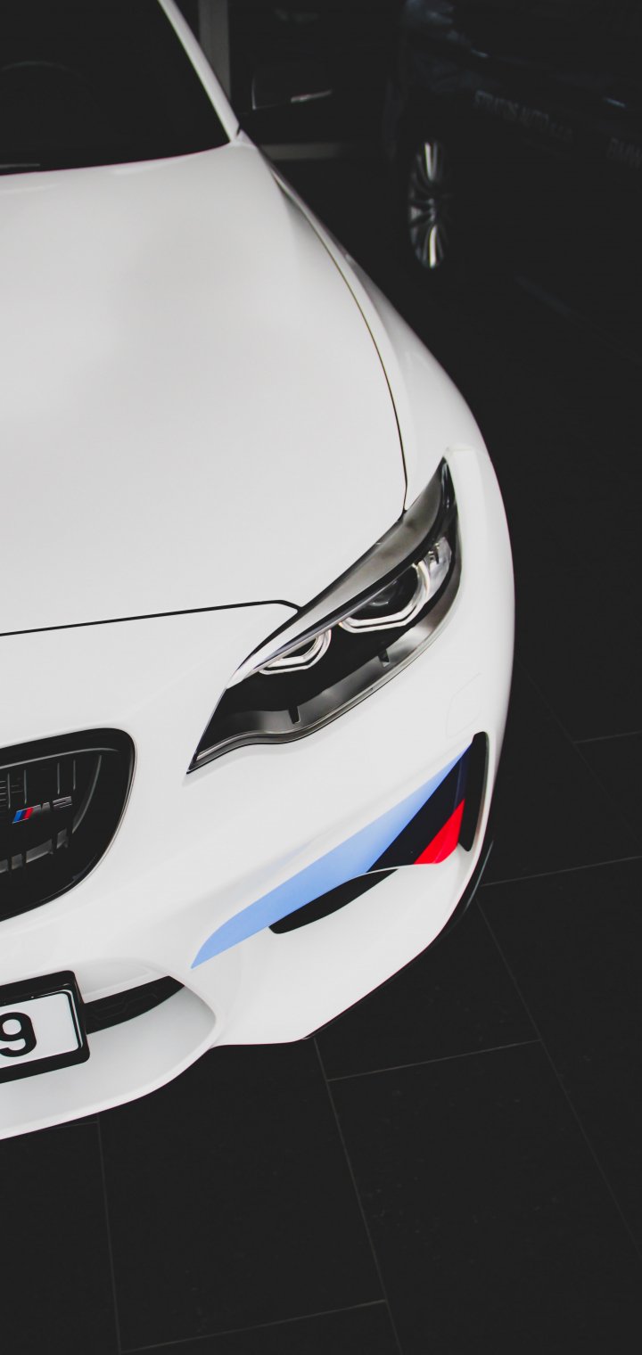 Wallpaper: white BMW M2, sports car, black and white - 720x1520