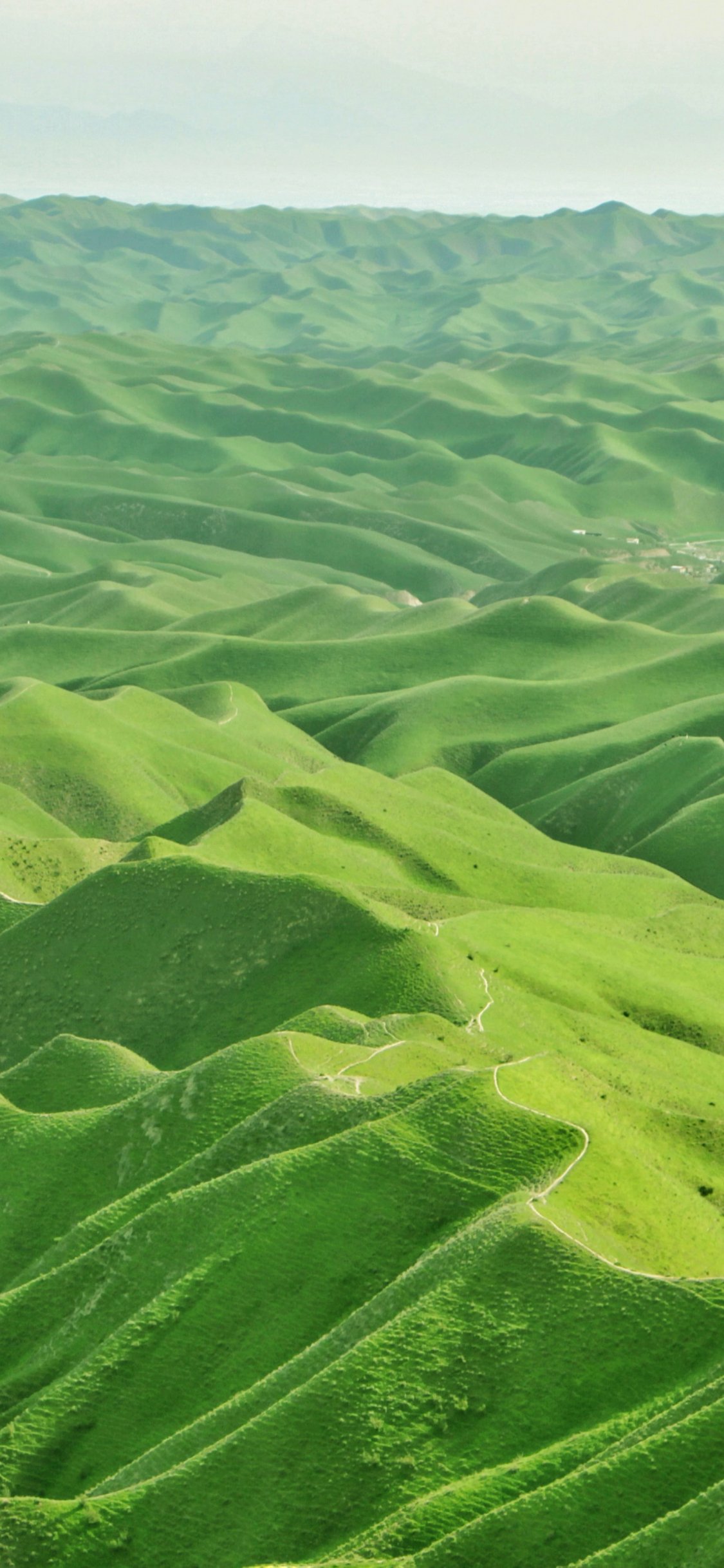 Wallpaper: valley, bird's eye view, green - 1125x2436