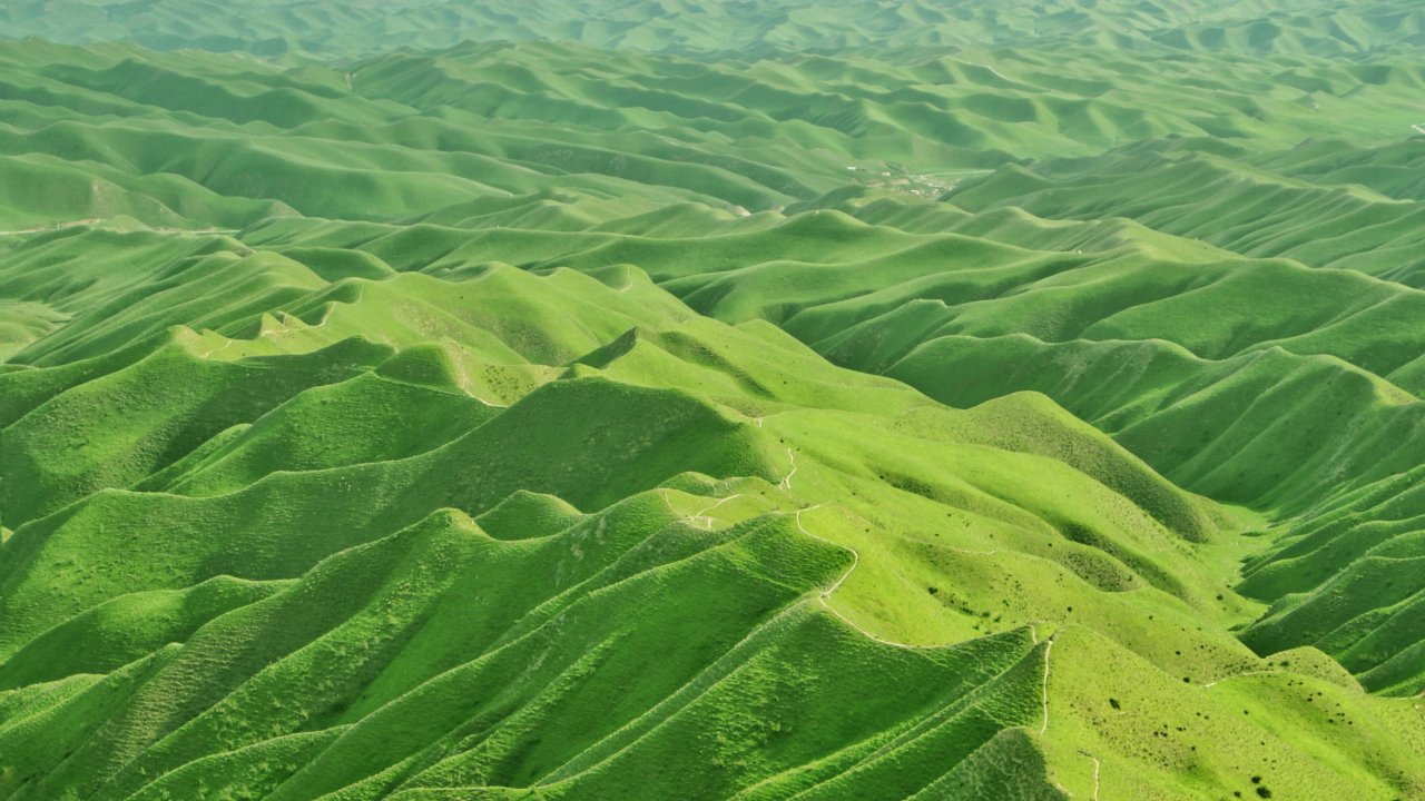 Wallpaper: valley, bird's eye view, green - 1280x720