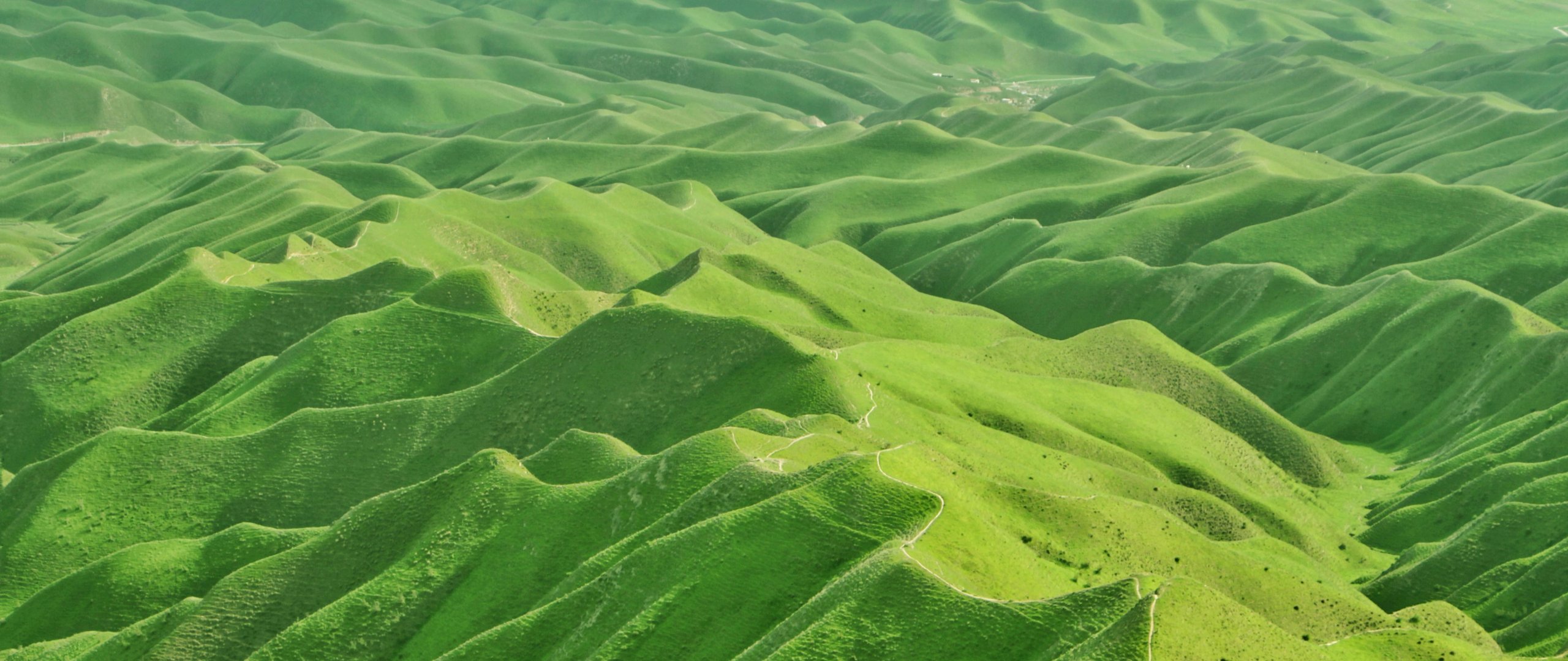 Wallpaper: valley, bird's eye view, green - 2560x1080