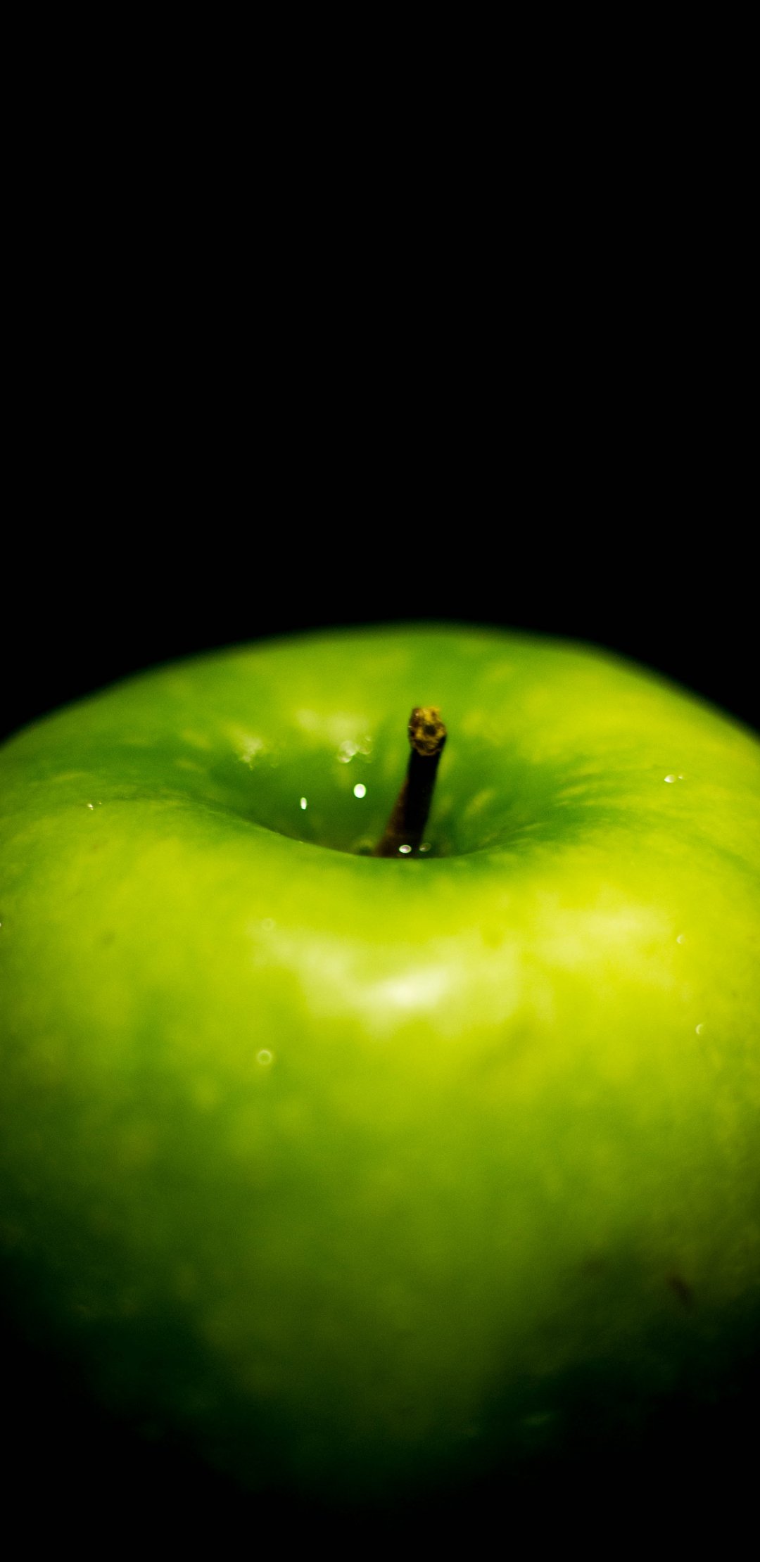 Wallpaper: green apple, on black background, macro - 1080x2220