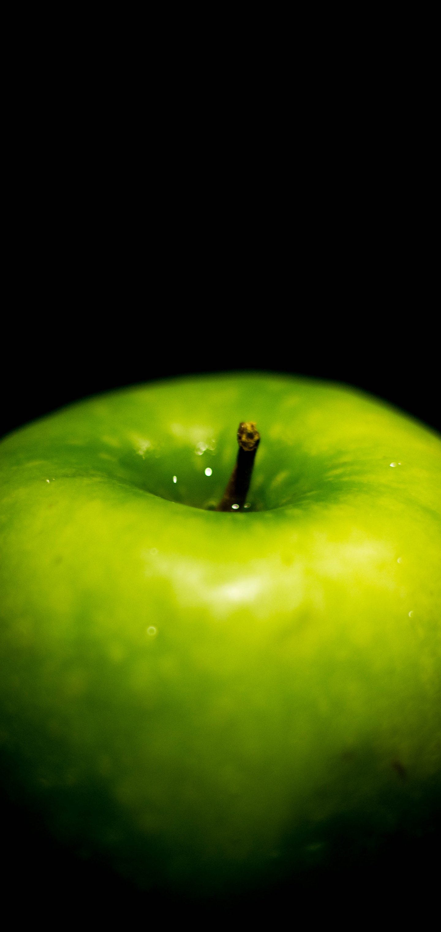 Wallpaper: green apple, on black background, macro - 1440x3040