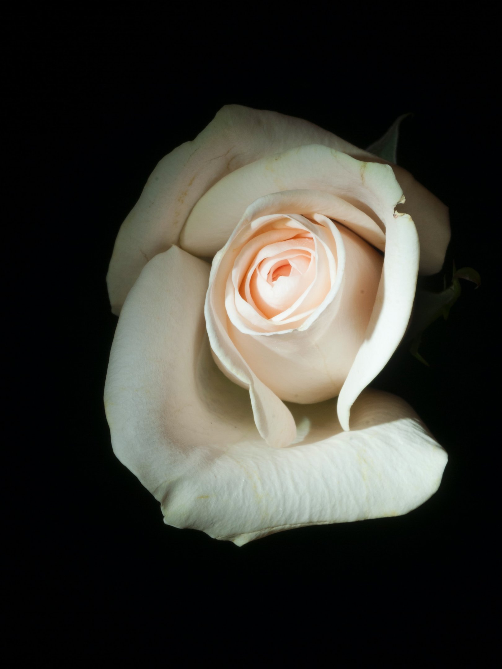 Wallpaper: white rose, on black background, macro - 1620x2160