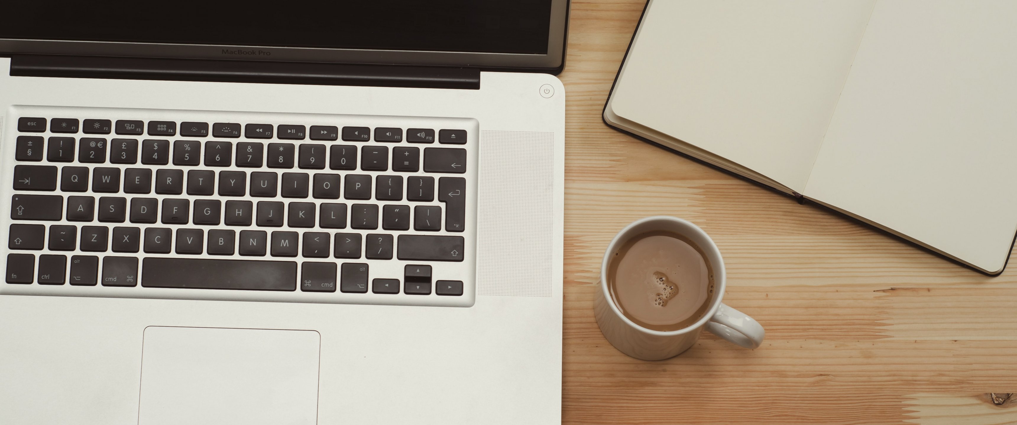 Wallpaper: laptop, coffee, workplace - 3440x1440