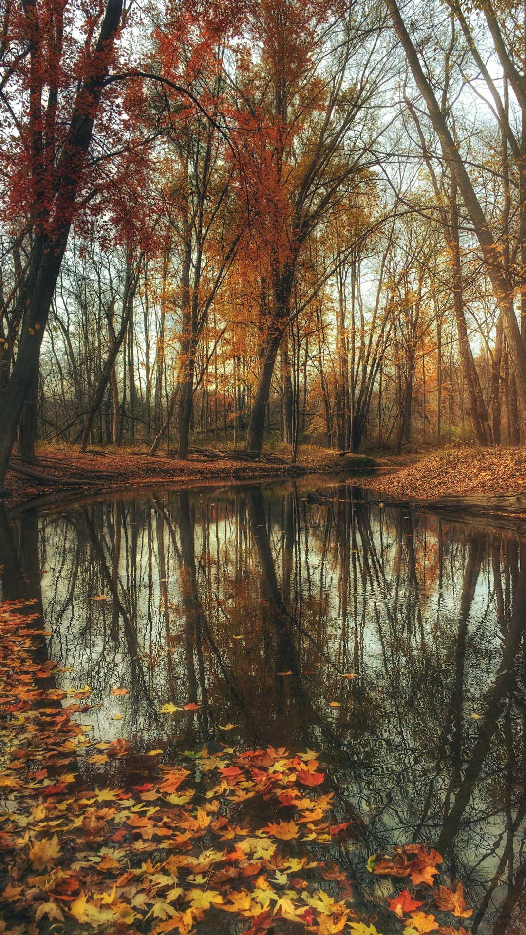 Wallpaper: autumn forest, pond, brown - 1080x1920