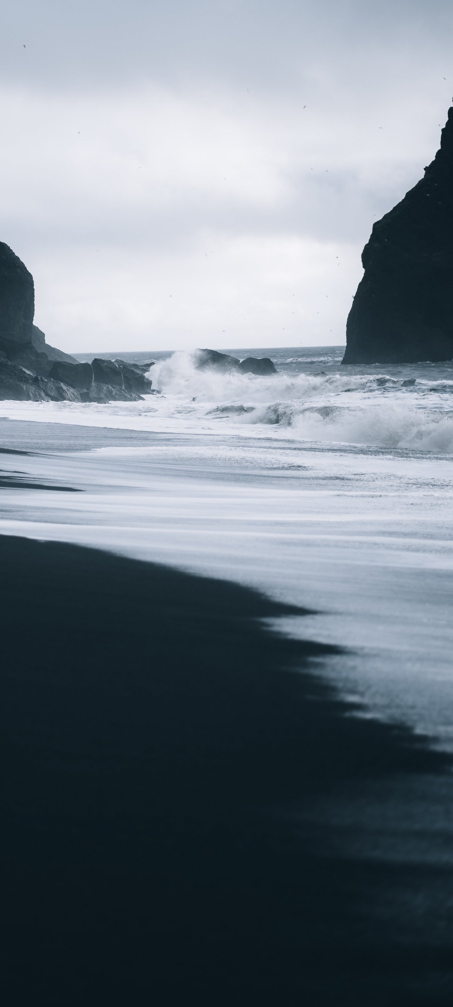 Wallpaper: Reynisfjara beach, Iceland, dark - 1440x3200