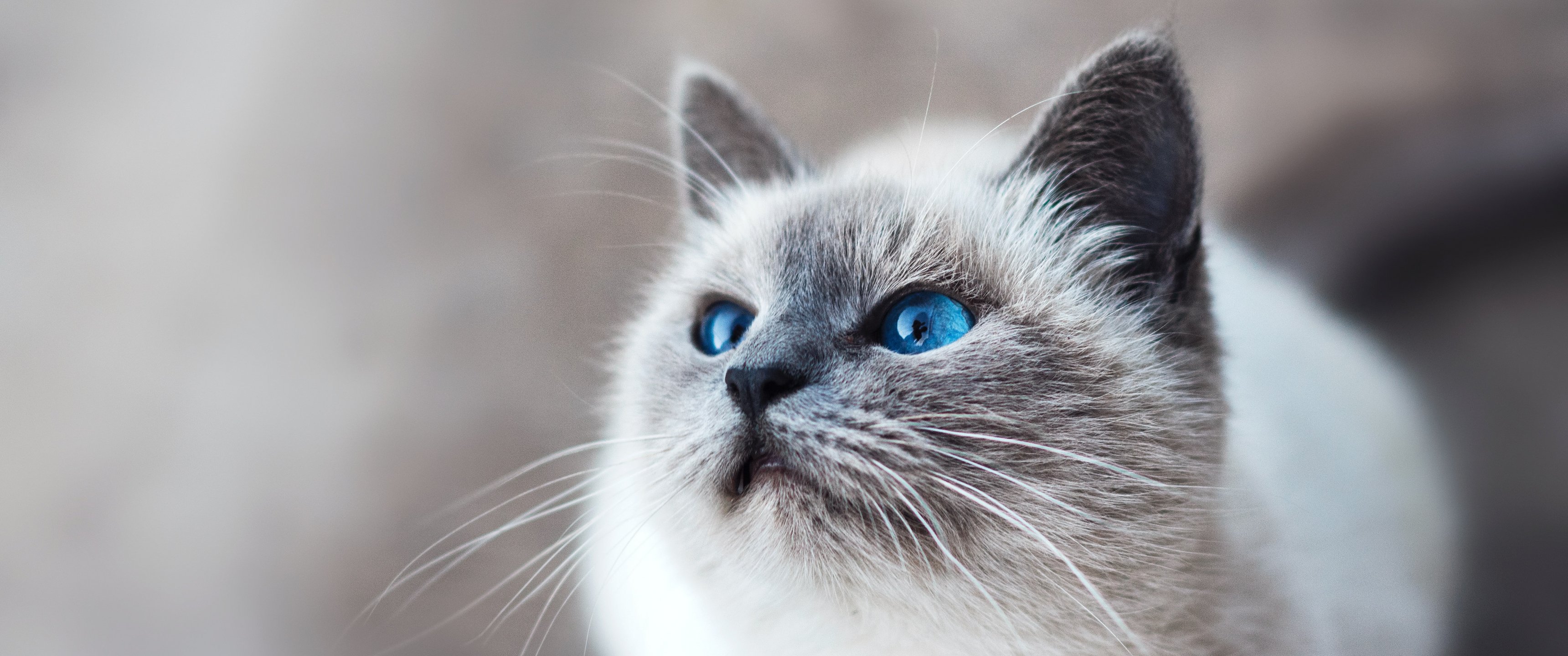 Wallpaper: cat, blue eyes, look - 3440x1440