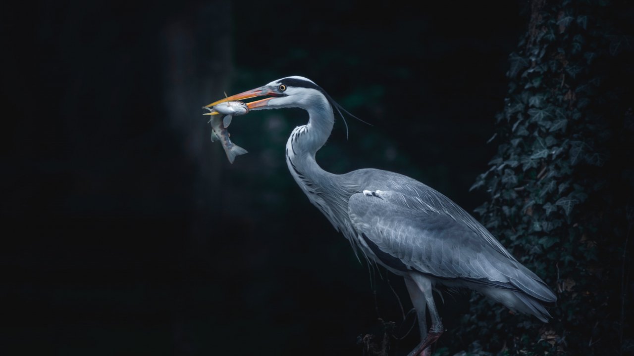 Wallpaper: gray heron, bird, dark - 1280x720