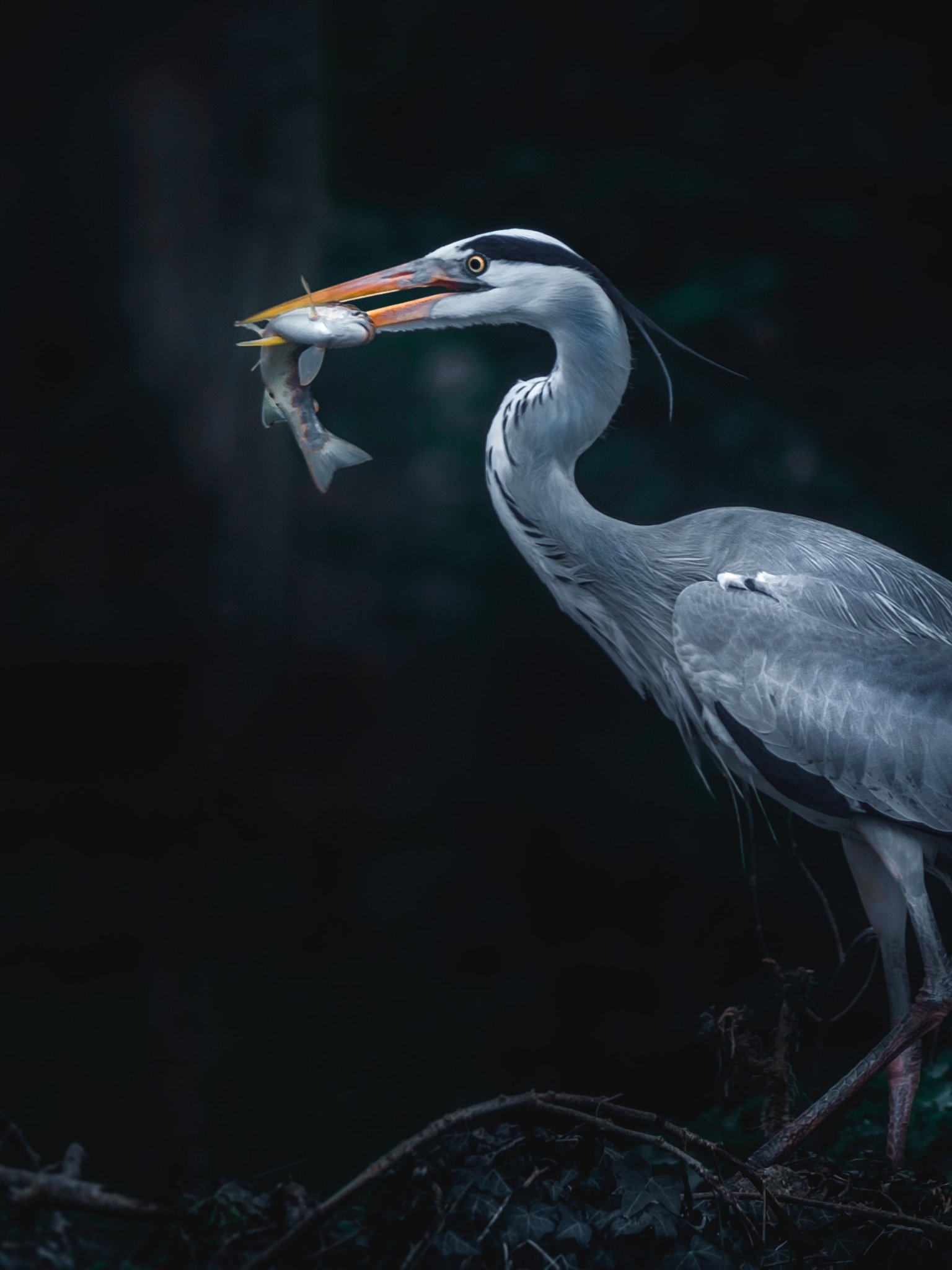 Wallpaper: gray heron, bird, dark - 1536x2048
